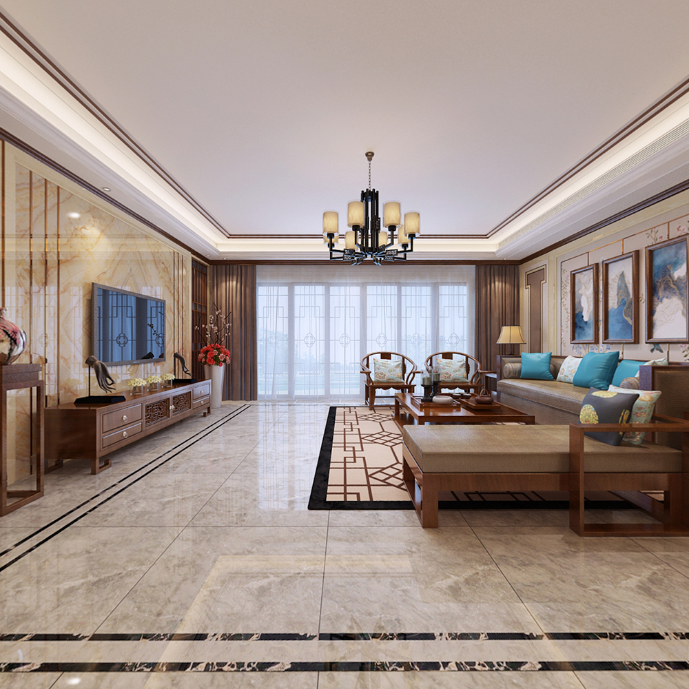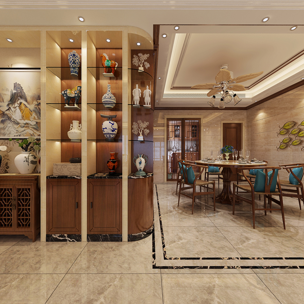 梅州萬象江山四居新中式風格裝修效果圖