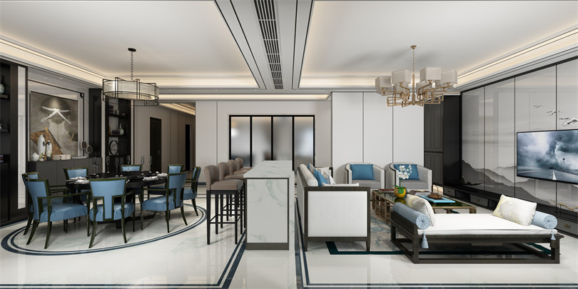 廣州101-200平米新中式風格御湖名邸裝修設計案例