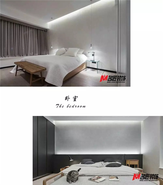 臥室同樣使用大面積的白色,給人安定包容的感覺,點綴在其中的布藝,干凈的顏色與柔軟內(nèi)斂的觸感,簡約的設(shè)計打造寧靜舒適的睡眠空間