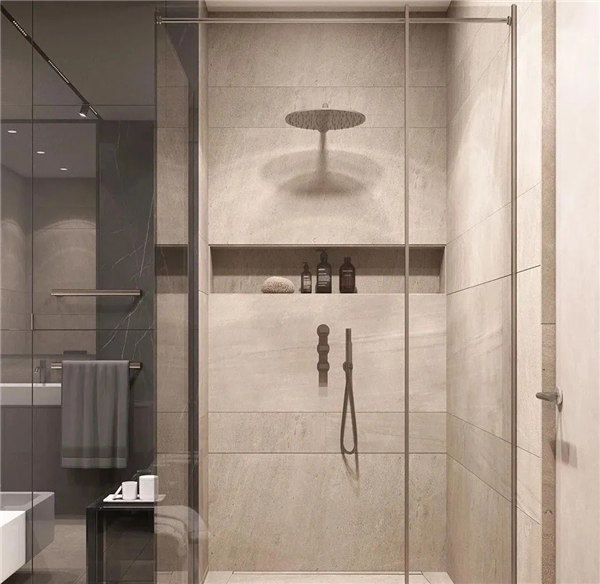 主衛和次衛都采用干濕分離,搭配石紋瓷磚和木紋板材營造簡約、舒適的環境,無需太亮眼的色調也能時尚耐看。
