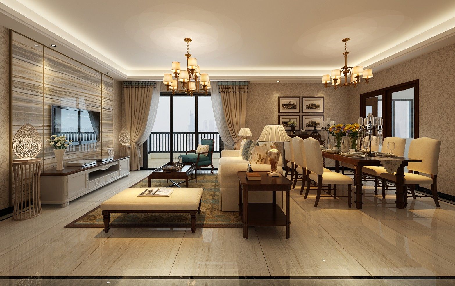 保山101-200平米美式風格裝修設計效果圖