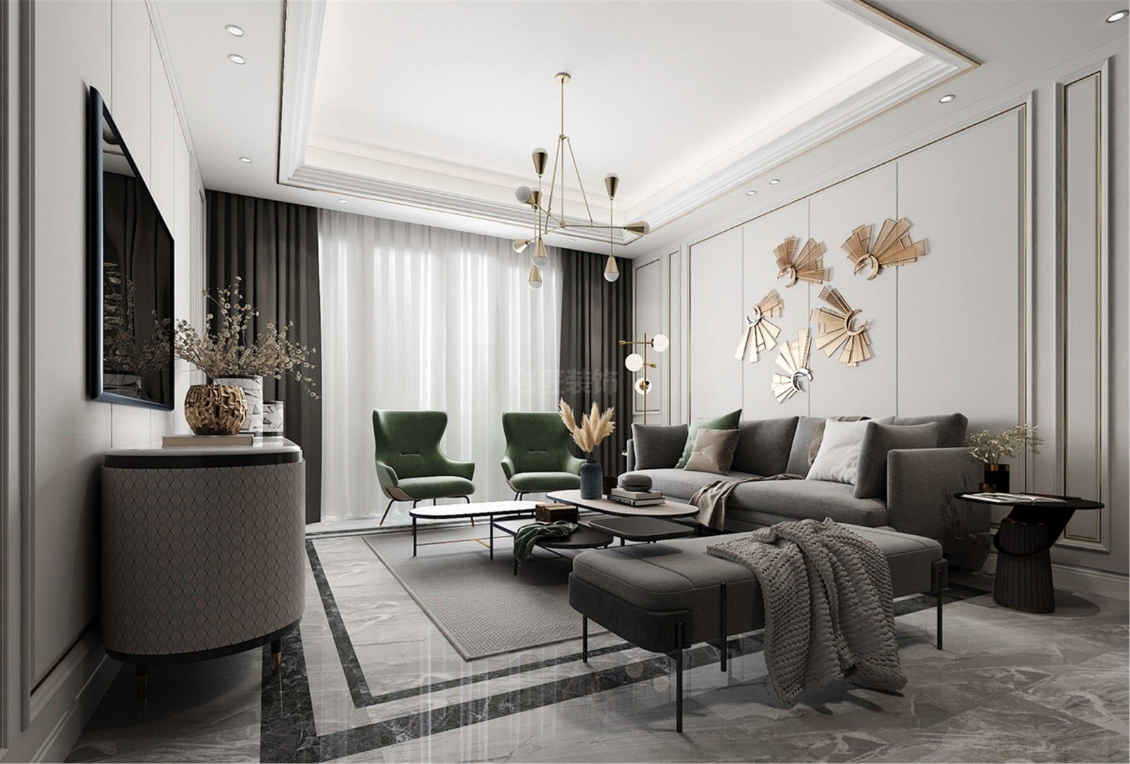 遂寧帝一江岸三居輕奢風格裝修效果圖