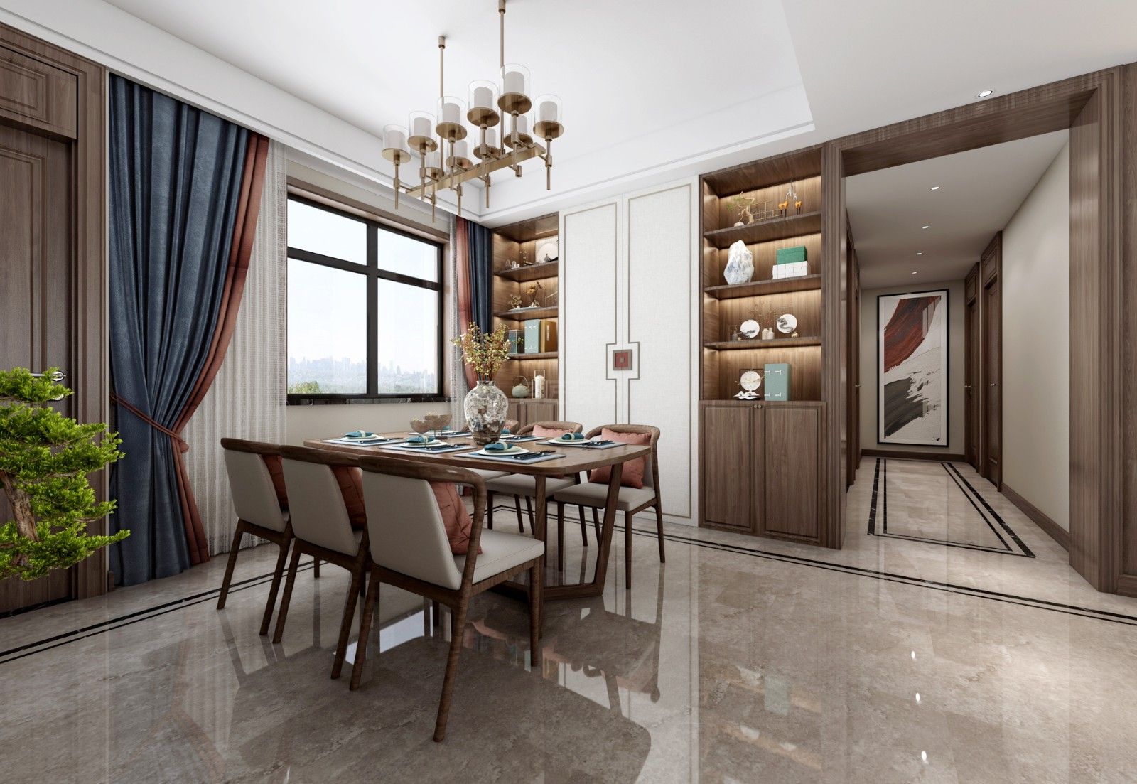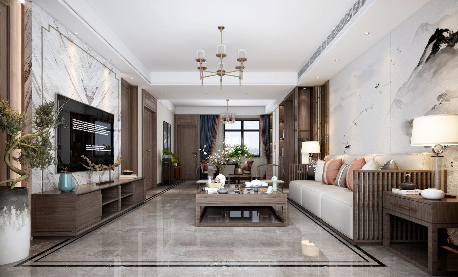 江門軒匯豪庭三居新中式風格裝修效果圖