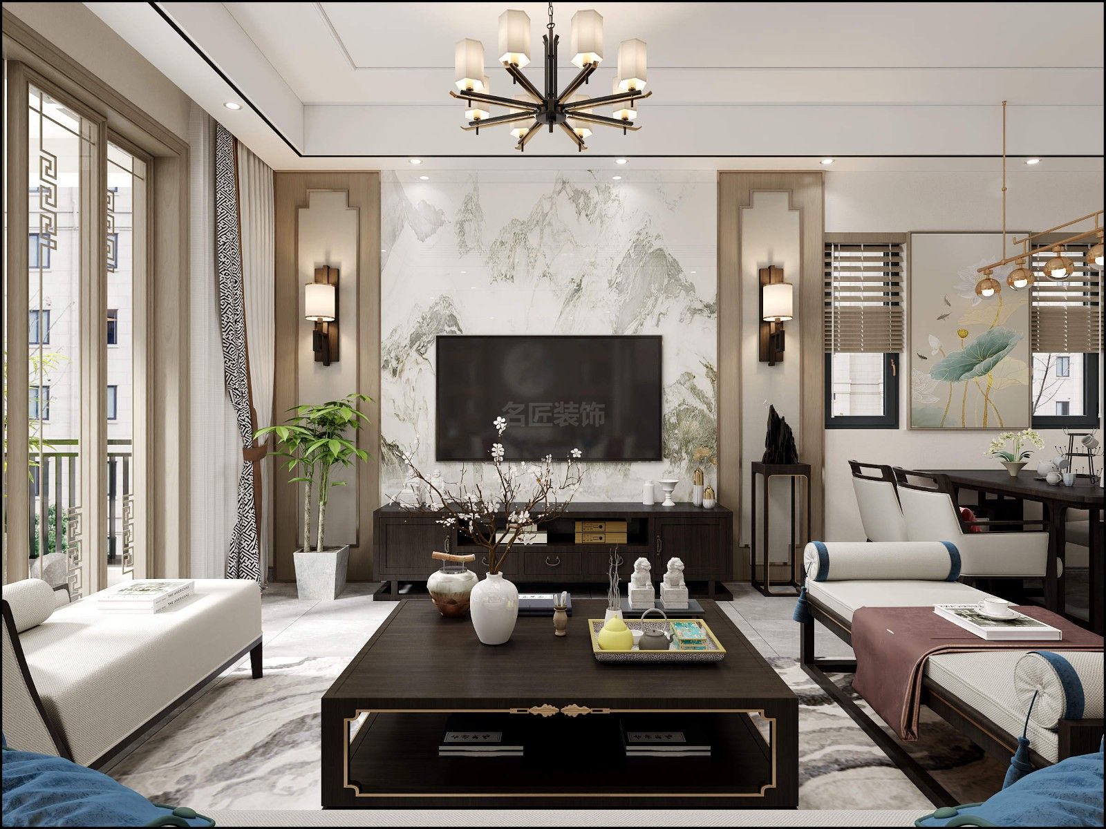 惠州201-300平米新中式風格景安花園家裝設計效果圖