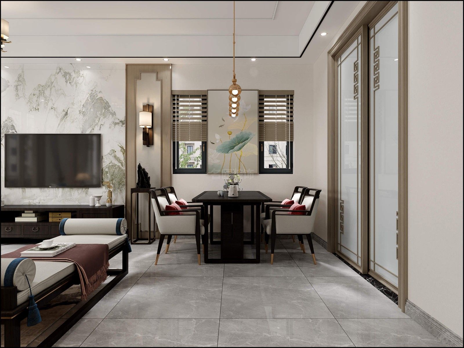 佛山金科博翠天下疊墅別墅新中式風格裝修效果圖