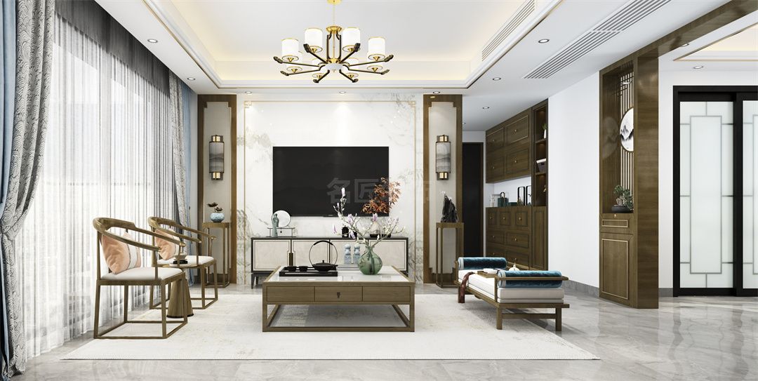 中山富逸臻譽三居新中式風格裝修效果圖