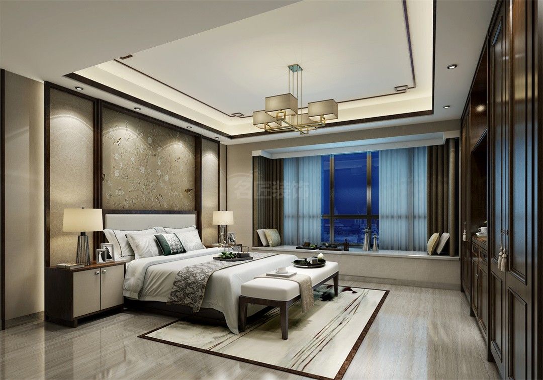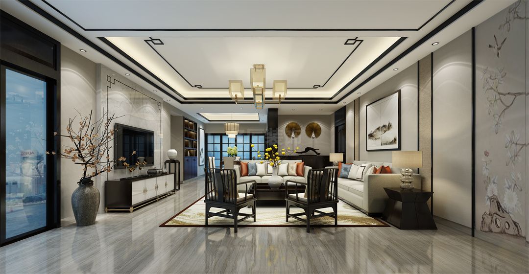 海口海岸一號三居新中式風格裝修效果圖