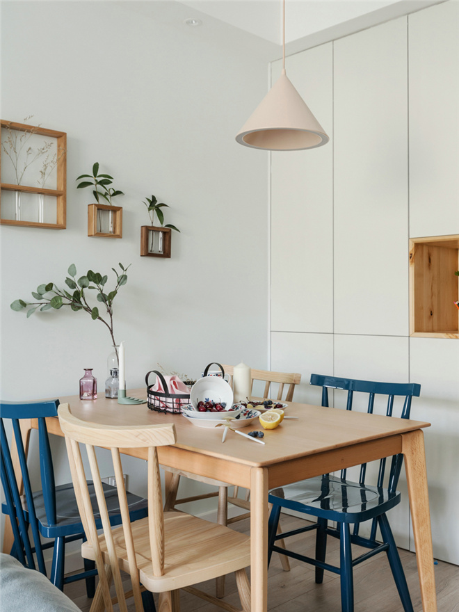 業主是一對新婚不久的年輕夫婦,為公司職員,這兩年計劃準備要小孩,在設計上不僅考慮短期的功能需求更多考慮未來幾年的功能變化,儲物空間的需求尤為重要,用柜子來做裝飾,既美觀又能儲物,大大的提高對有限空間的利用,結合這些需求,最終選定了休閑居家的北歐風格。